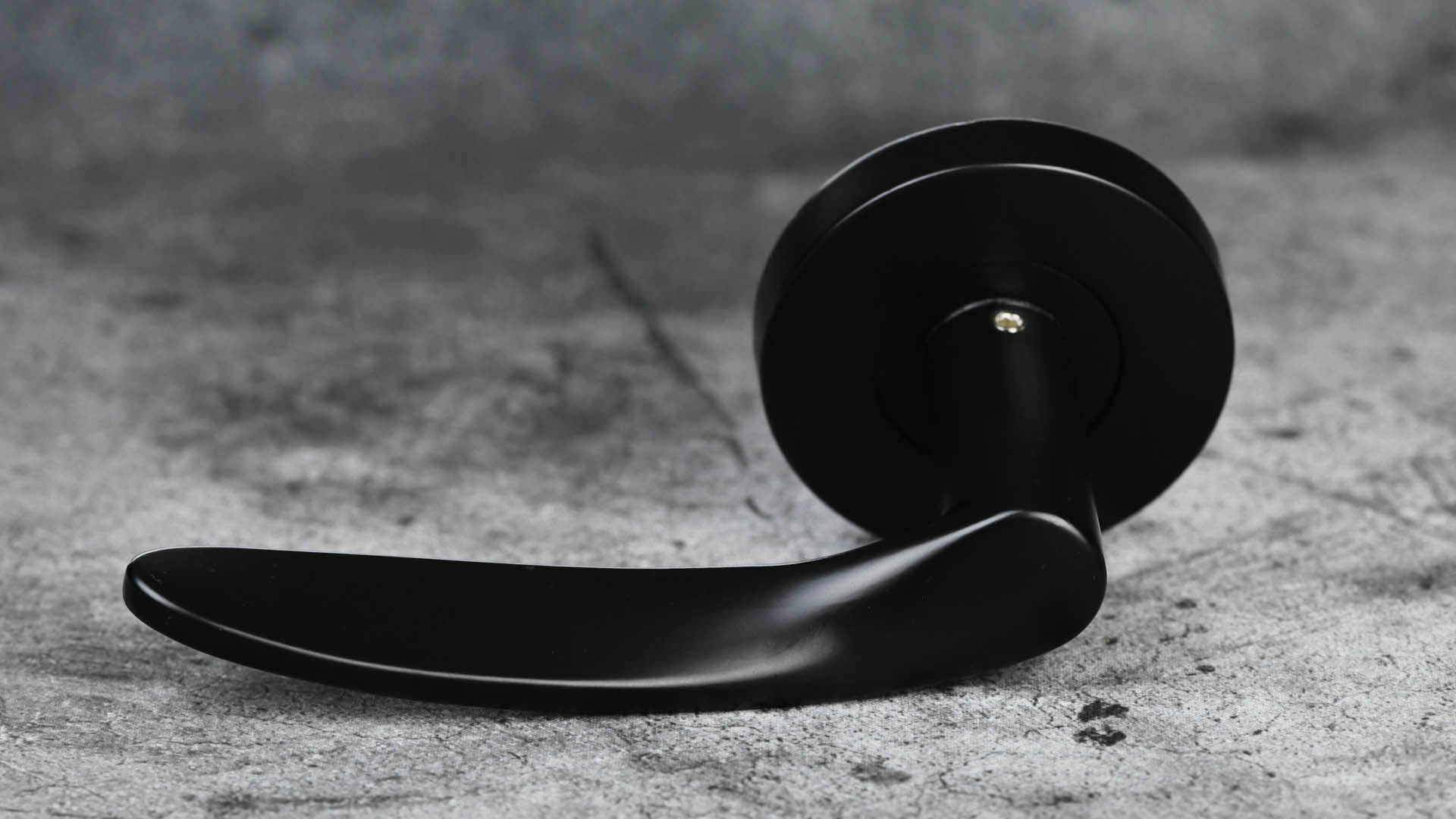 ASSEN FLUID AND GENTLY CURVED HANDLE ON ROUND ROSETTE IN MATTE BLACK FINISH